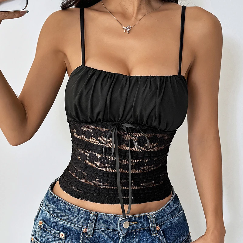 BXOXO Women Camisole Sleeveless Tops Backless Lace Patchwork Slim Fit Summer Vest for Party Club Y2k Fairy Cottage Vest
