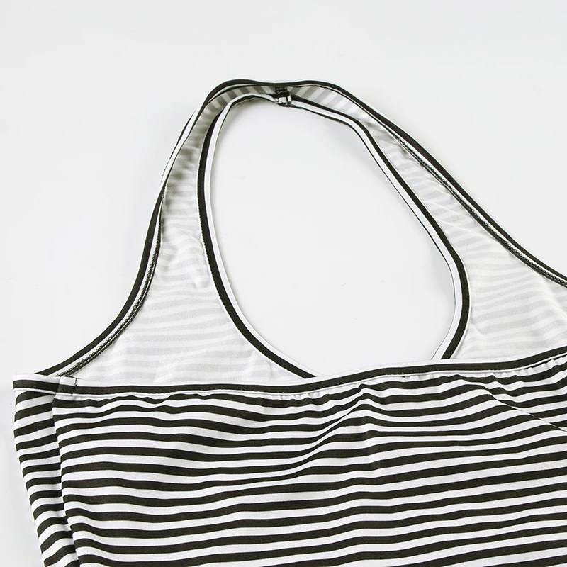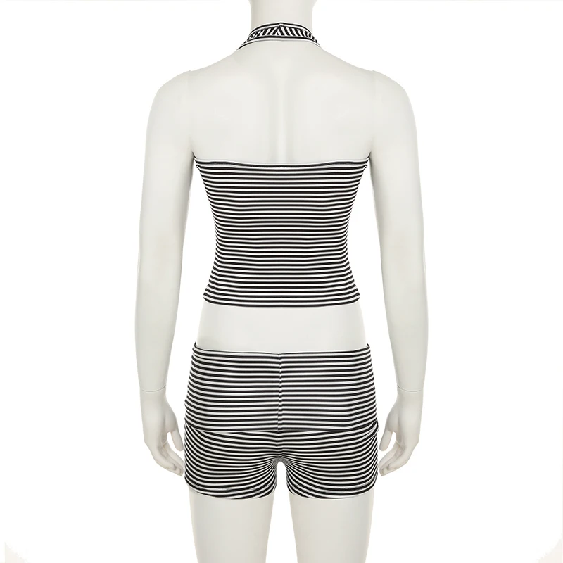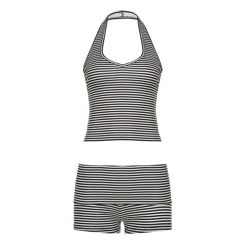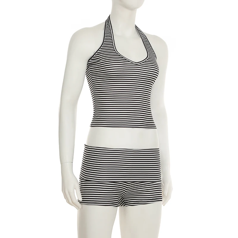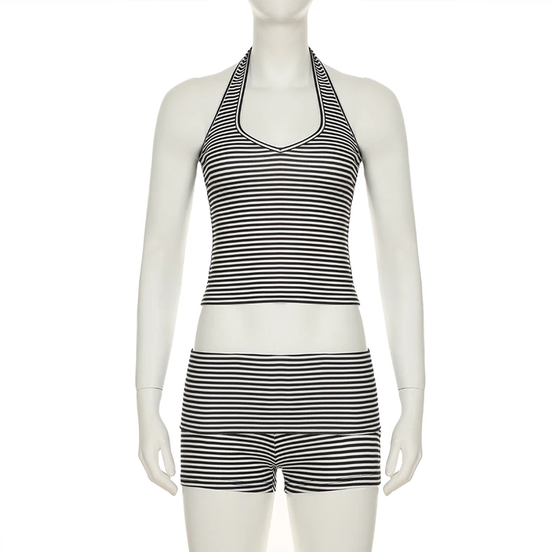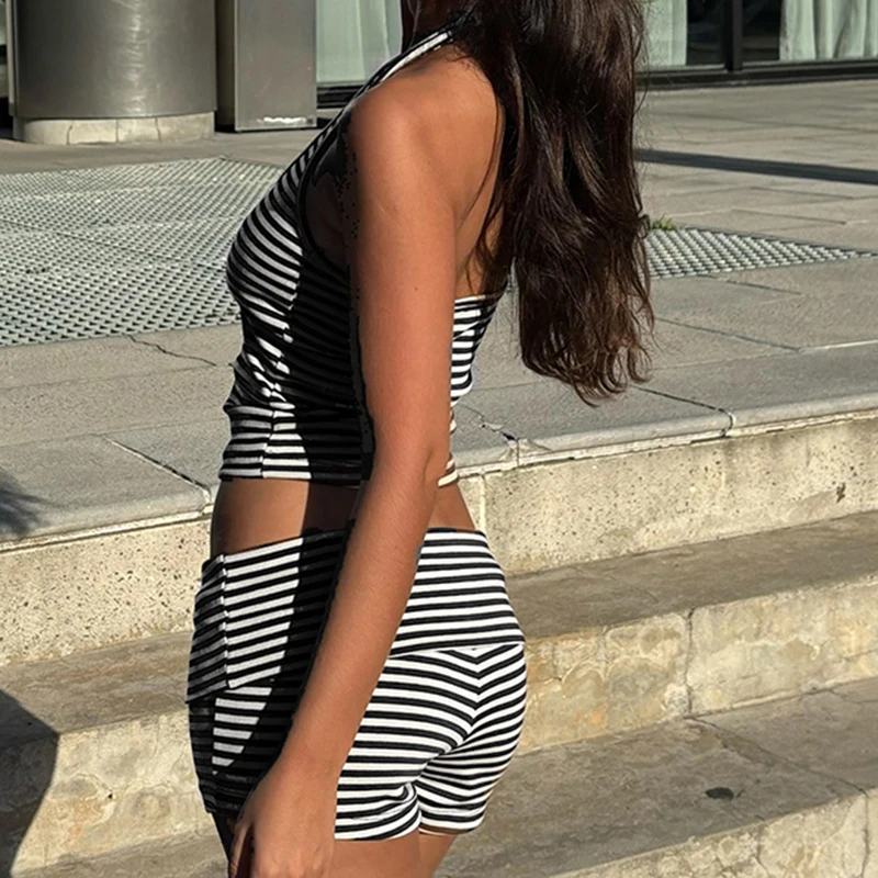 BXOXO Women Casual Striped Print Two Piece Sets Vintage Halter Crop Top and Low Rise Skinny Shorts y2k Streetwear Outfits Basic