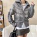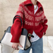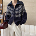 Bxoxo Women Fair Isle Sweater Zipper Front Collared Zip-up Sweater Knit Jacket Cozy Knitwear Teen-girl Fall Winter Vintage Outfit