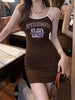 Bxoxo Women Fashion Letter Print Sexy Bodycon Dress Spaghetti Strap O-neck Slim Fit Dress Streetwear Summer One piece