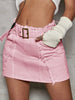 Bxoxo Women Fashion Low Rise Denim Skirt Belted Raw Detail Slant Pocket Cargo Skirt Retro Aesthetic A-Line Jean Skirt