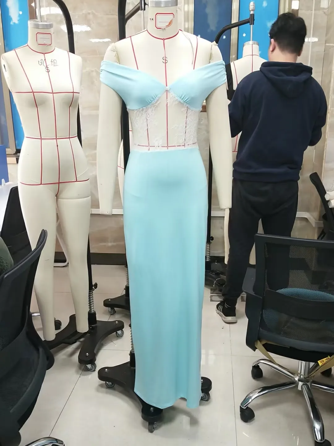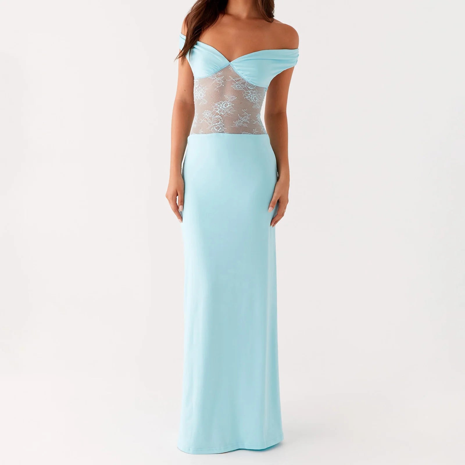 BXOXO Women Long Dress Lace Patchwork Y2K Off The Shoulder Dress Summer Club Party Night Sundress Fashion Bodycon Dress