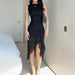 BXOXO Women Maxi Dress Summer Elegant Solid Sleeveless Nipped Waist Slim Backless Ruffled Irregular Party Dresses Streetwear