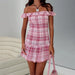 BXOXO Women Off Shoulder Plaid Mini Dress Sleeveless Aline Y2k Gingham Babydoll Formal Short Party Vacation Short Dress