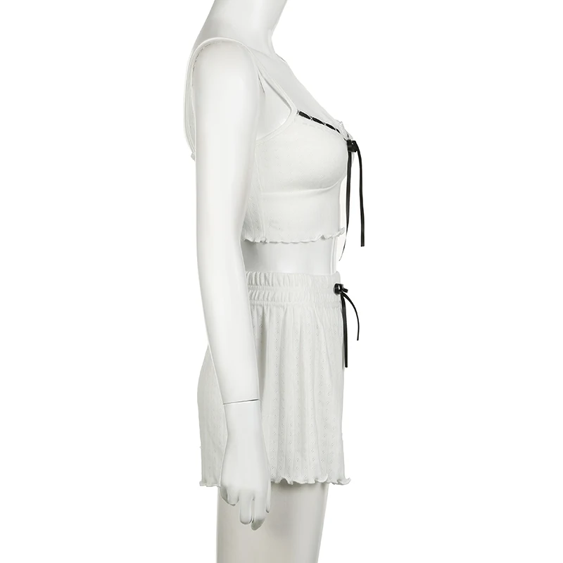 BXOXO Women Pajamas Set 2 Pieces Loungewear Suits Contrast Tie-Up Camisoles Tank Tops and Elastic Waist Shorts Sleepwear y2k Outfits