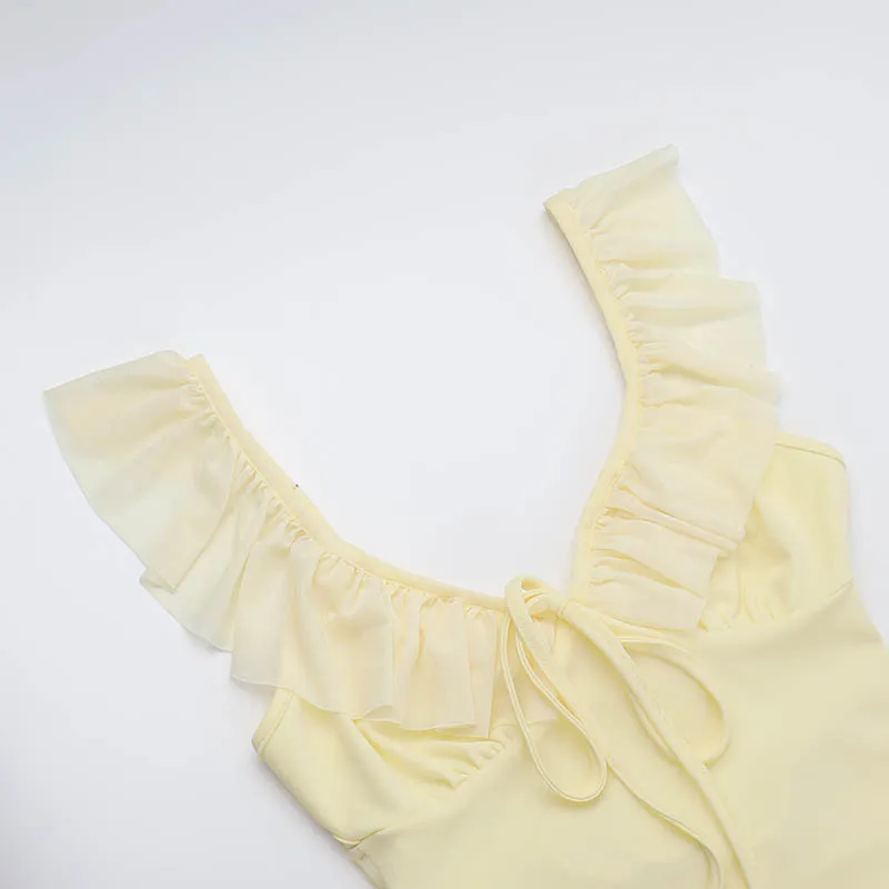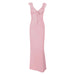 BXOXO Women Ruffle Trim Cami Dress Slim Solid Color Deep V Neck Open Back Tie Long Evening Dress for Party Clubwear