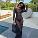 BXOXO Women Slash Neck Mesh See-Through Dress New Sexy Slim Pullover Long Sleeve Floor-Length Solid Dresses Beach Cover ups