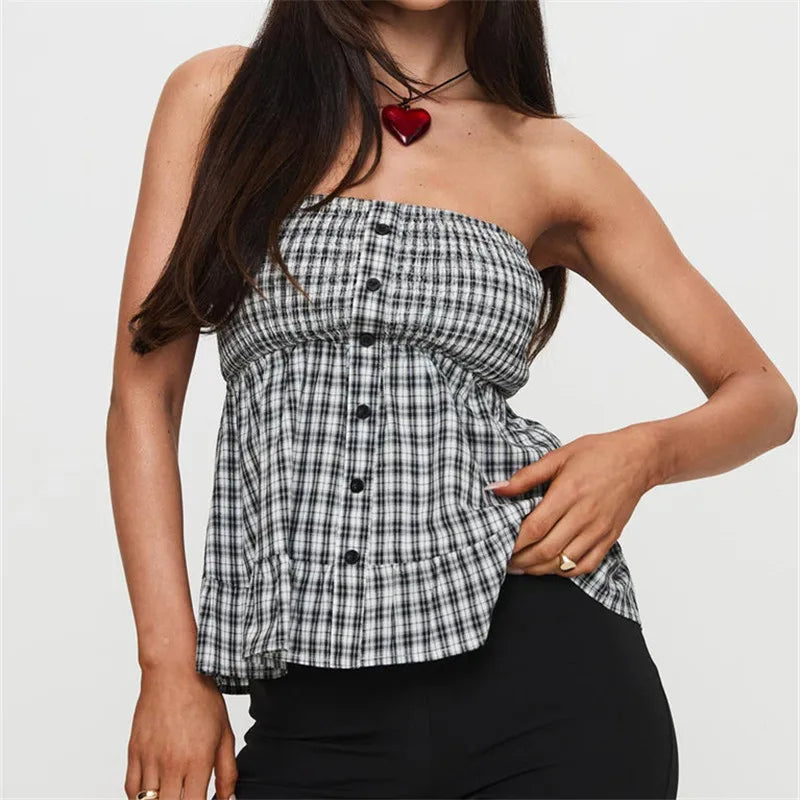 BXOXO Women Strapless Peplum Top Ruffle Hem Tube Bandeau Top Backless Sleeveless Tank Top Summer Going Out Streetwear