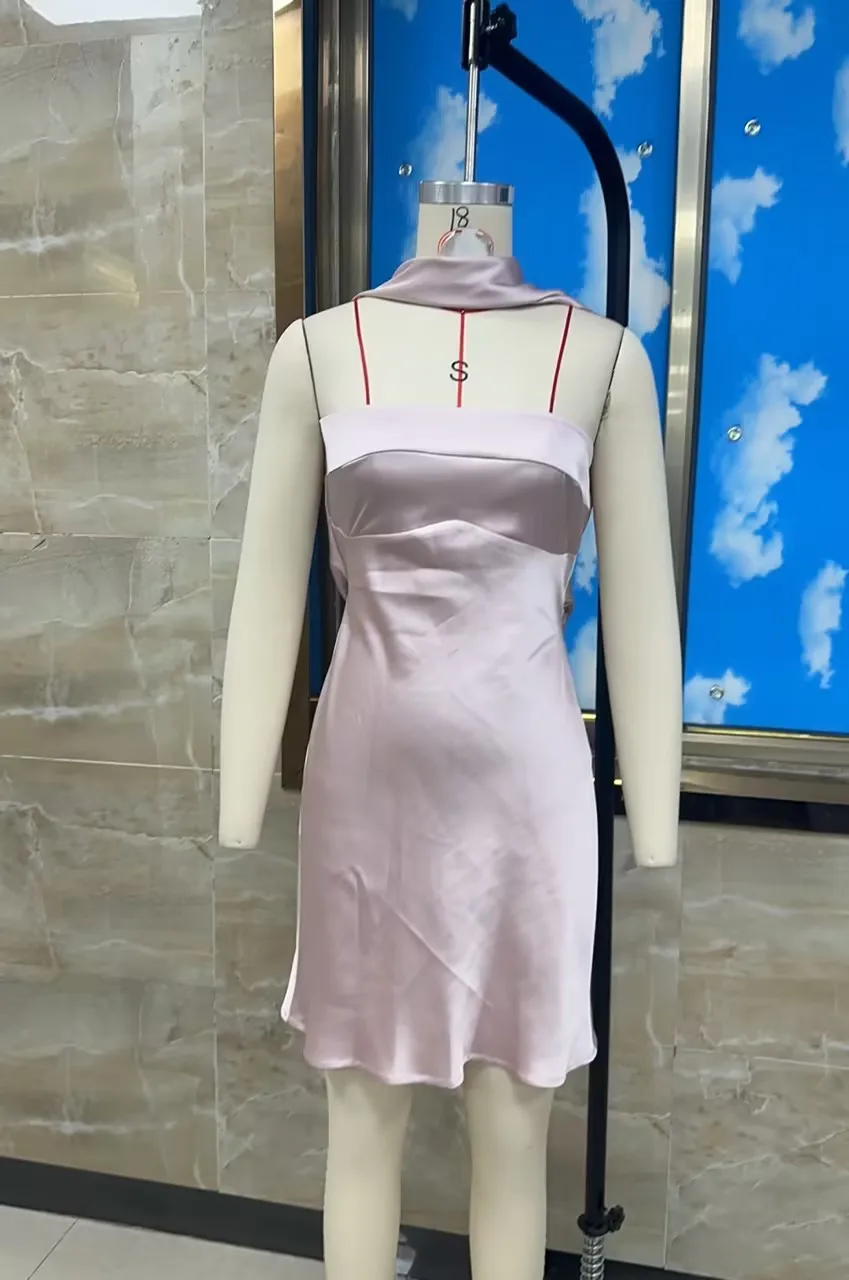 BXOXO Women Strapless Tube Mini Bodycon Dress with Scarf Y2k Sexy Open Back Silk Satin Club Party Night Short Dresses Summer