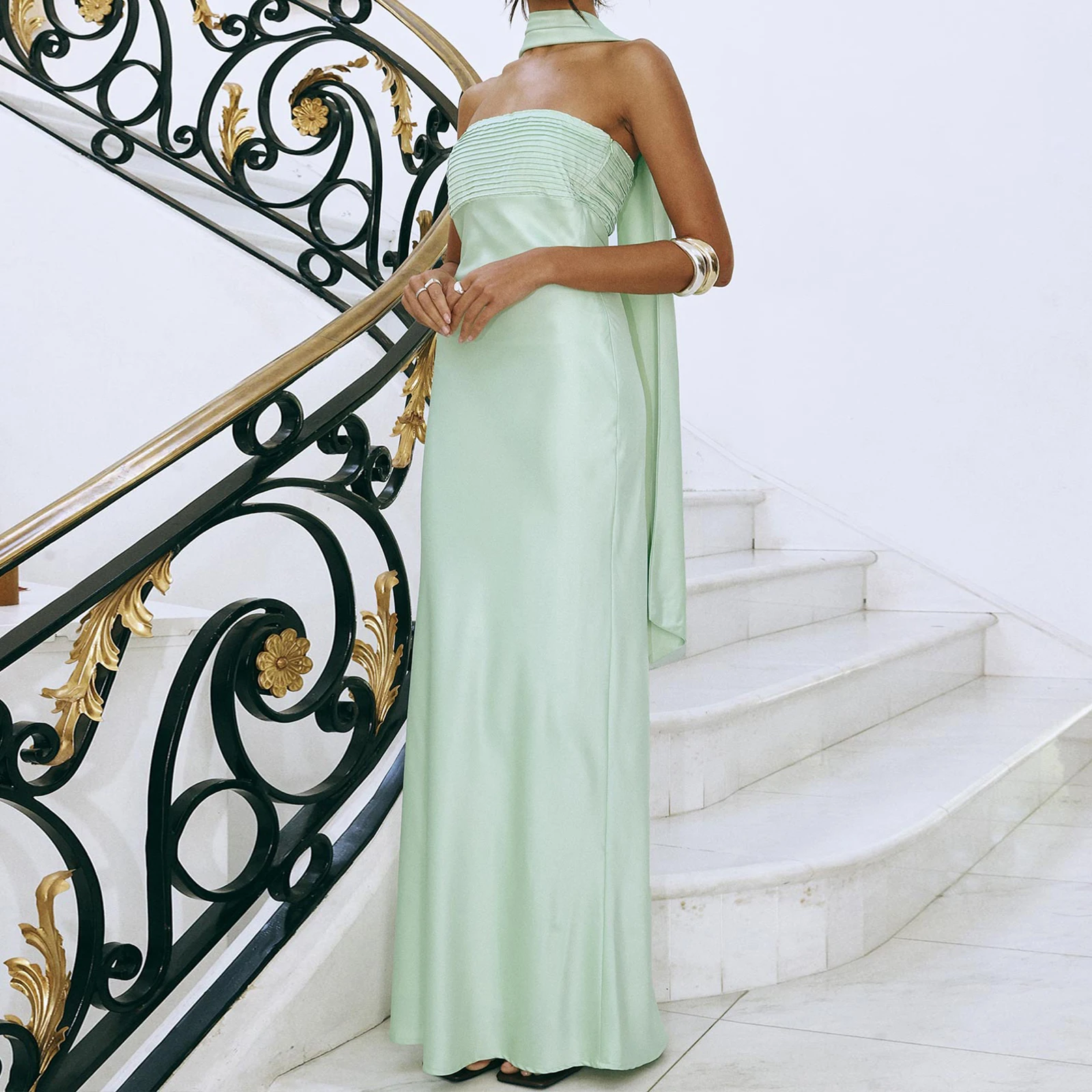 BXOXO Women Summer Long Bandeau Dress Sleeveless Off Shoulder Solid Color Tube Top Dress with Scarf Formal Cocktail Sundress