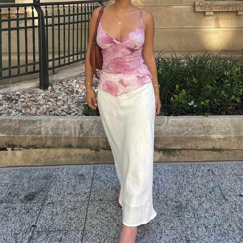 BXOXO Women V Neck Sleeveless Layers Crop Tops Y2k Coquette Tie Dye Print Camisole Boho Beach Backless Tank Tops Laides Vest