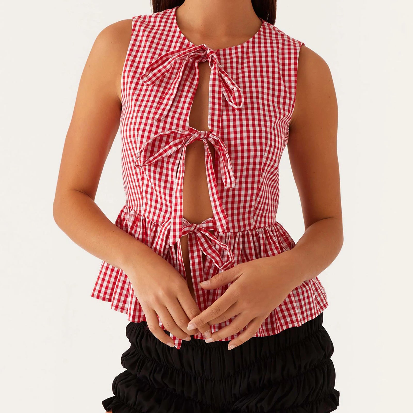 BXOXO Women Y2k Babydoll Tank Top Vintage Tie Side Plaid Sleeveless Peplum Cami Top Summer Going Out Crop Top Streetwear