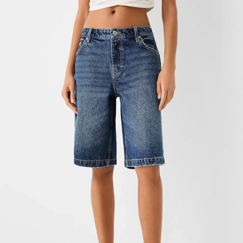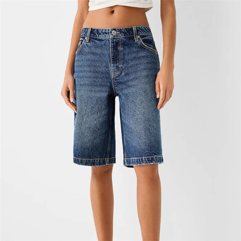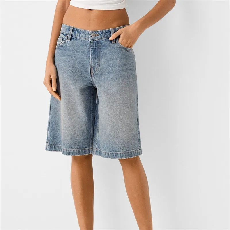 BXOXO Women Y2k Bermuda Denim Shorts Low Rise Wide Leg Knee Length Carpenter Long Jean Shorts Summer Cow Girl Baggy Jorts