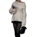 Bxoxo Women y2k Loose Knit Sweater Solid Color Long Sleeve Boat Neck Off Shoulder Pullovers Fall Winter Casual Jumpers Streetwear