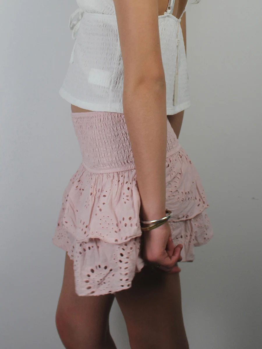 BXOXO Women Y2K Ruffle Layered Mini Skirts Smocked A Line Pleated Short Skirt Boho Beach Mini Skirt Cute Skirts for Teen Girls