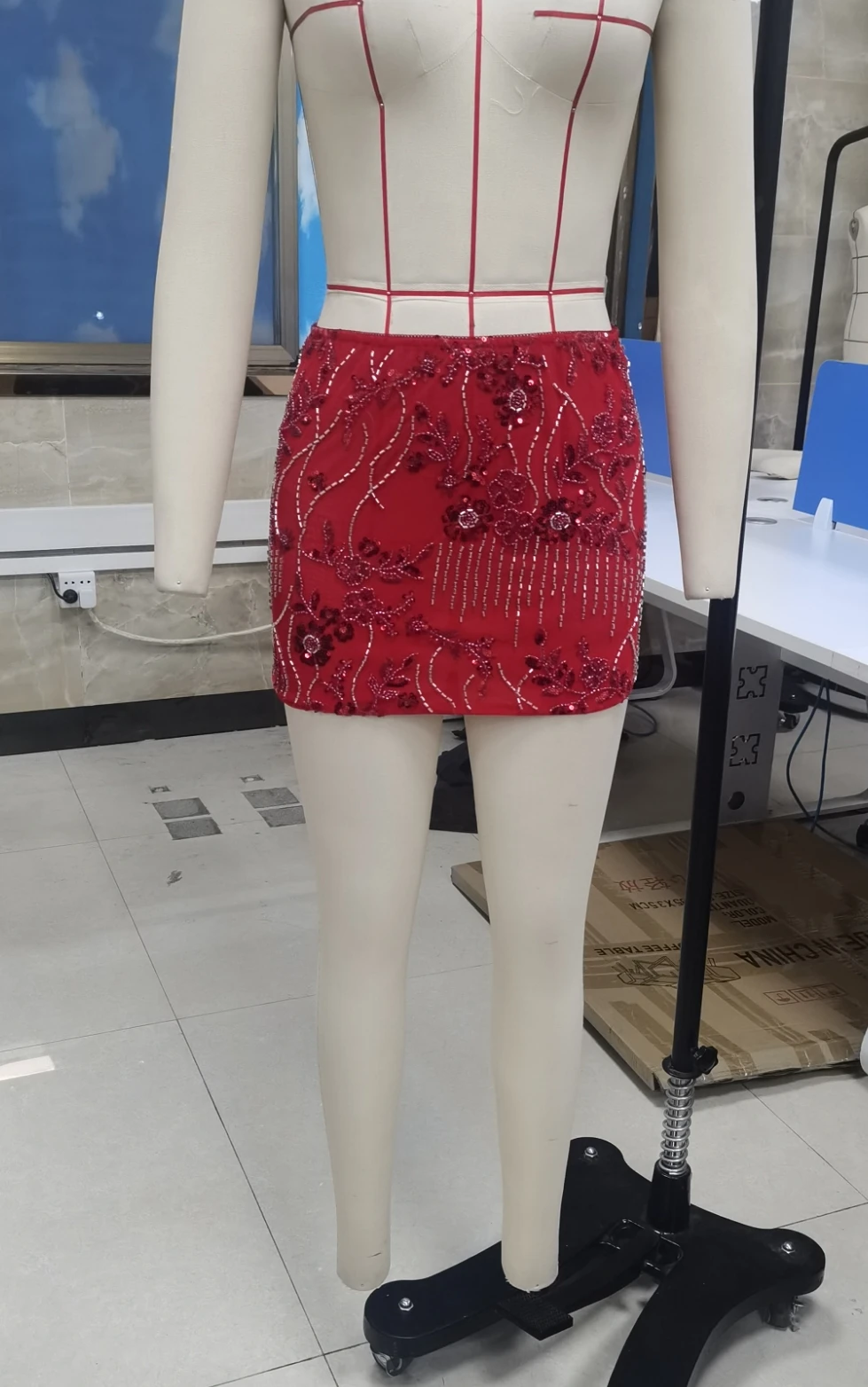 BXOXO Women Y2K Sequin Mini Skirt Low Waist Sparkle Beaded Short Skirt Glitter Shiny Bodycon Skirt Night Out Party