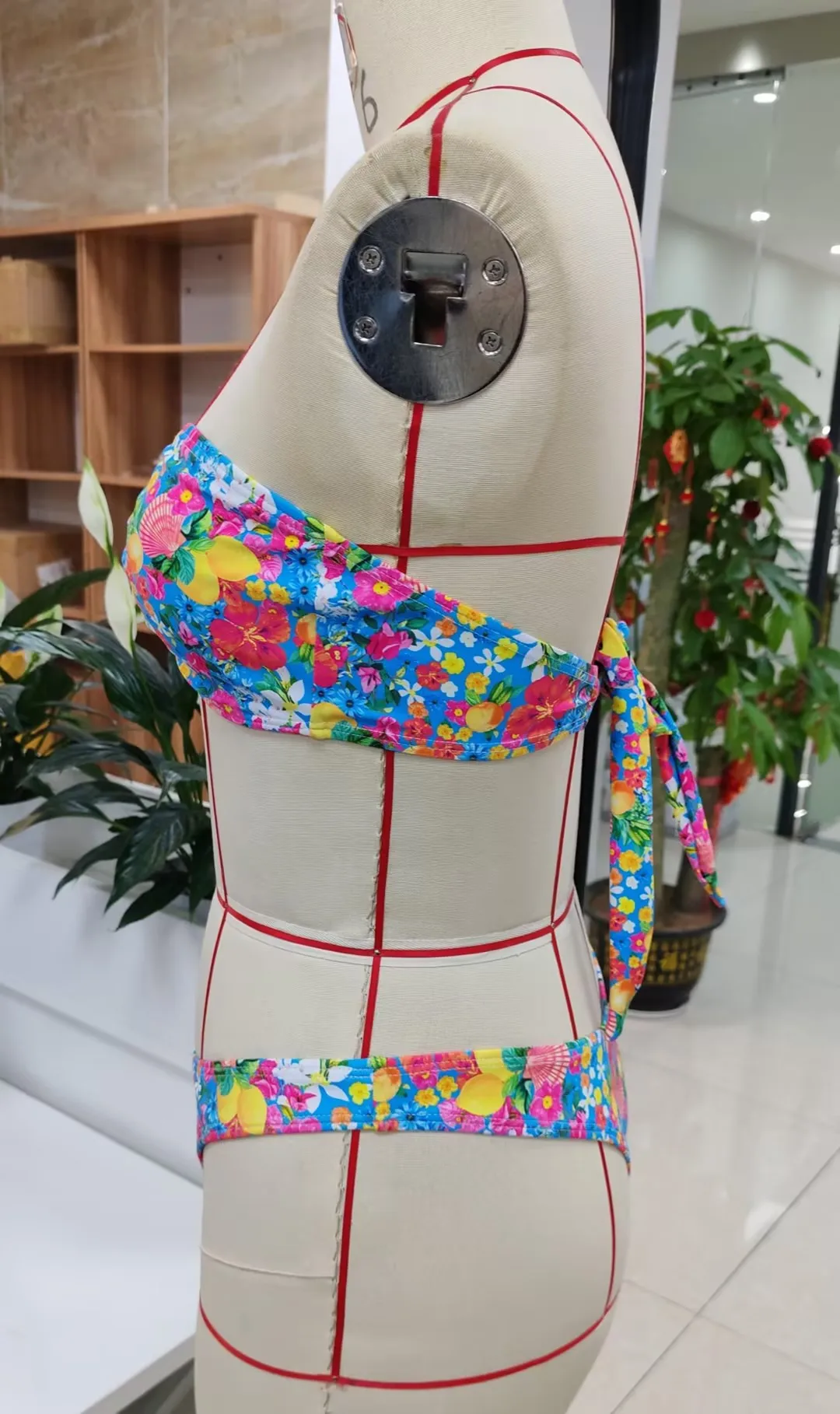 BXOXO Women Y2k String Bikini Set Sexy Floral Print Halter Tie-Up Bikini Top Thong Bottoms Swimsuit Beach Bathing Suit Set