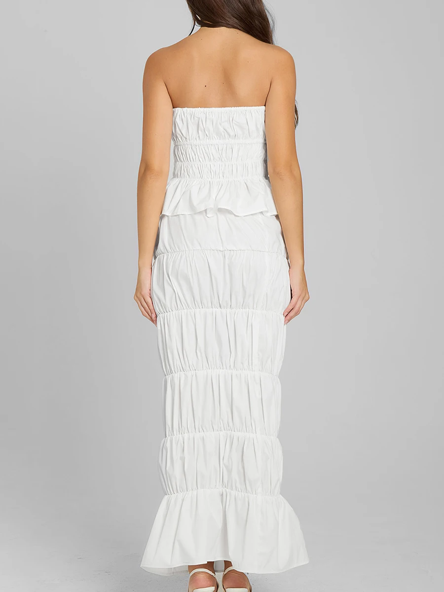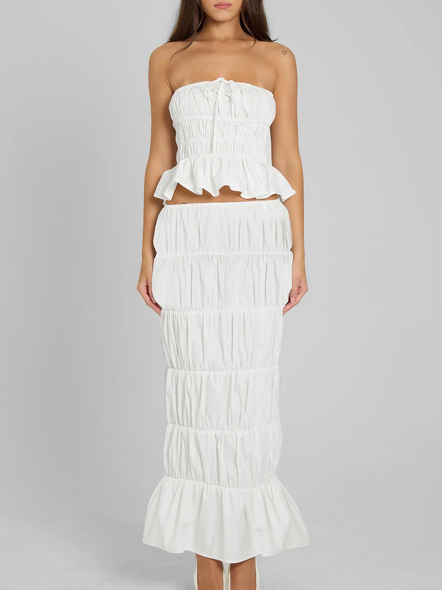 BXOXO Women Y2K Two Piece Maxi Skirt Set Strapless Crop Tube Top Ruffle Mesh Skirts Outfit Lace Trim Holiday Beach Outfit