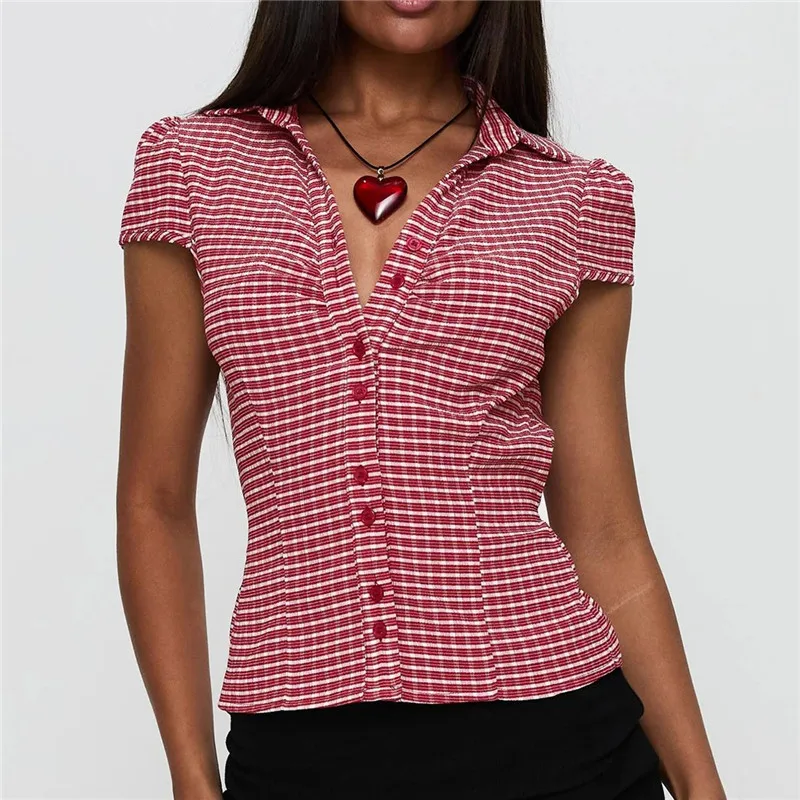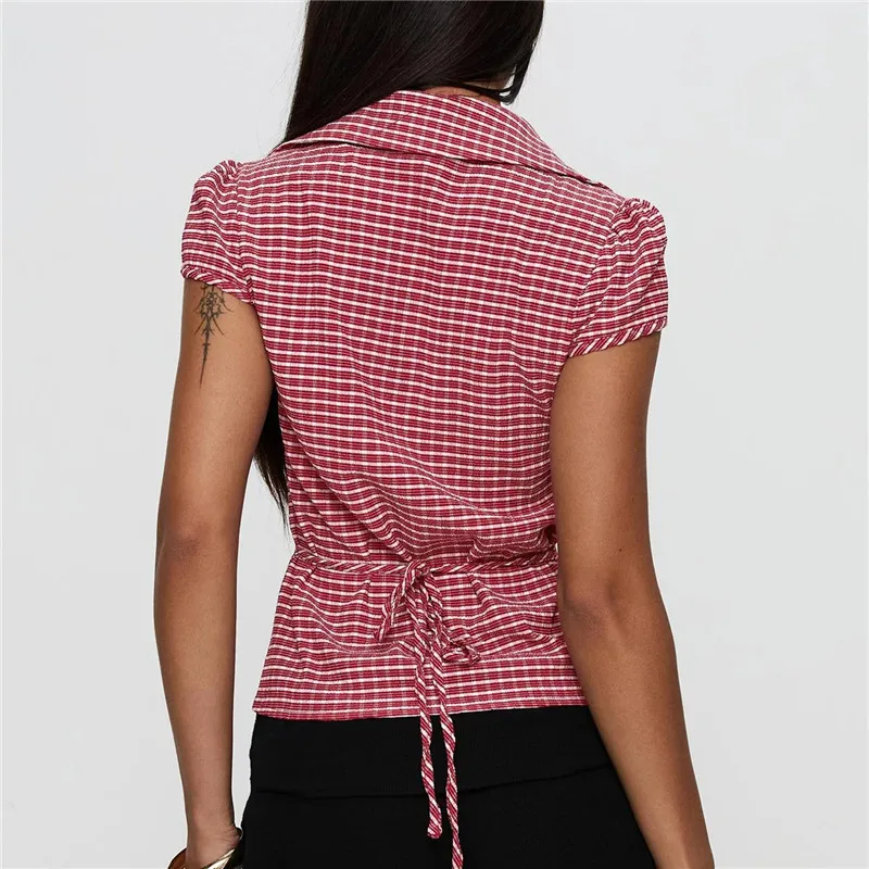 BXOXO Women's Basic Button Down Shirts Cap Sleeve Lapel Collar Tight Blouse Tie Up Back Slim Fit Tops Summer Office Shir