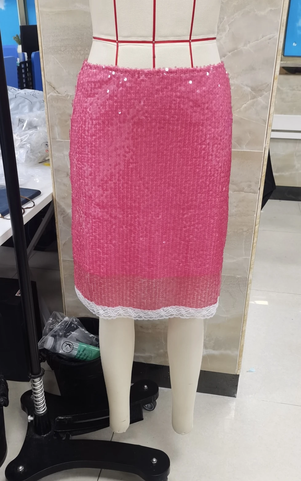 BXOXO Women's Fashion Midi Skirts Sequins Lace Trim Low Waist Skirts Summer Fashion Bodycon Skirts Dress Y2K Streetwear