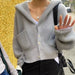 Bxoxo Women's Hooded Cardigan Button Up with Pocket Knitted Sweater Hoodie Slouchy Knitwear Fall Winter Casual Chic Outfit