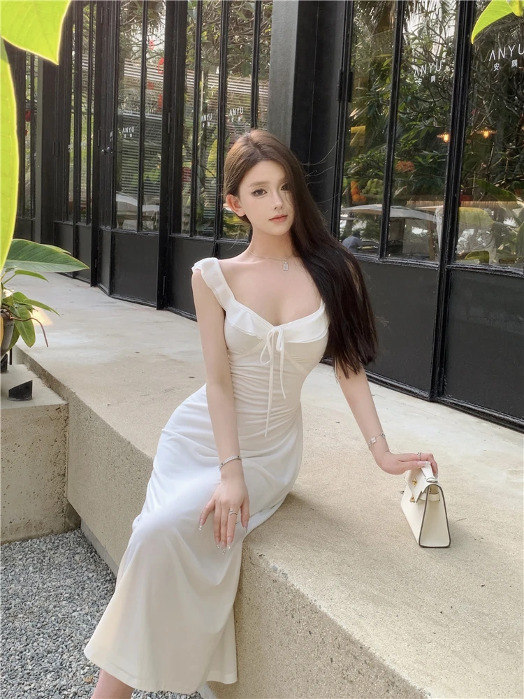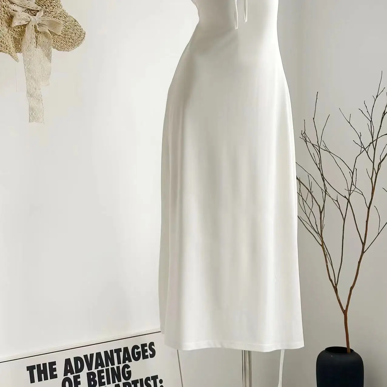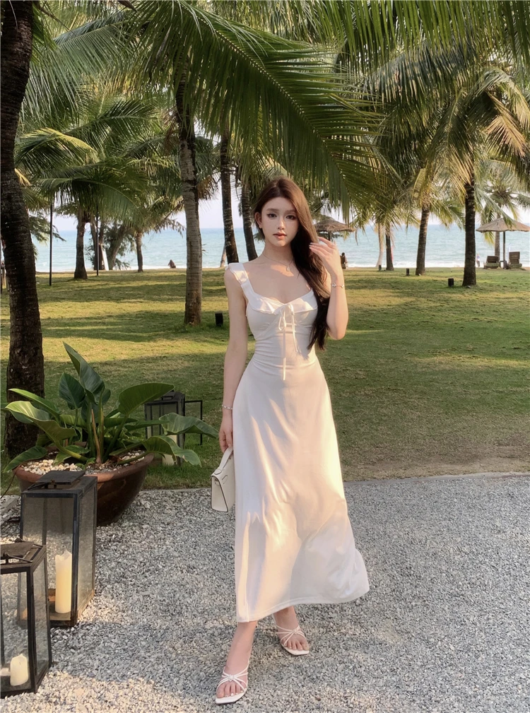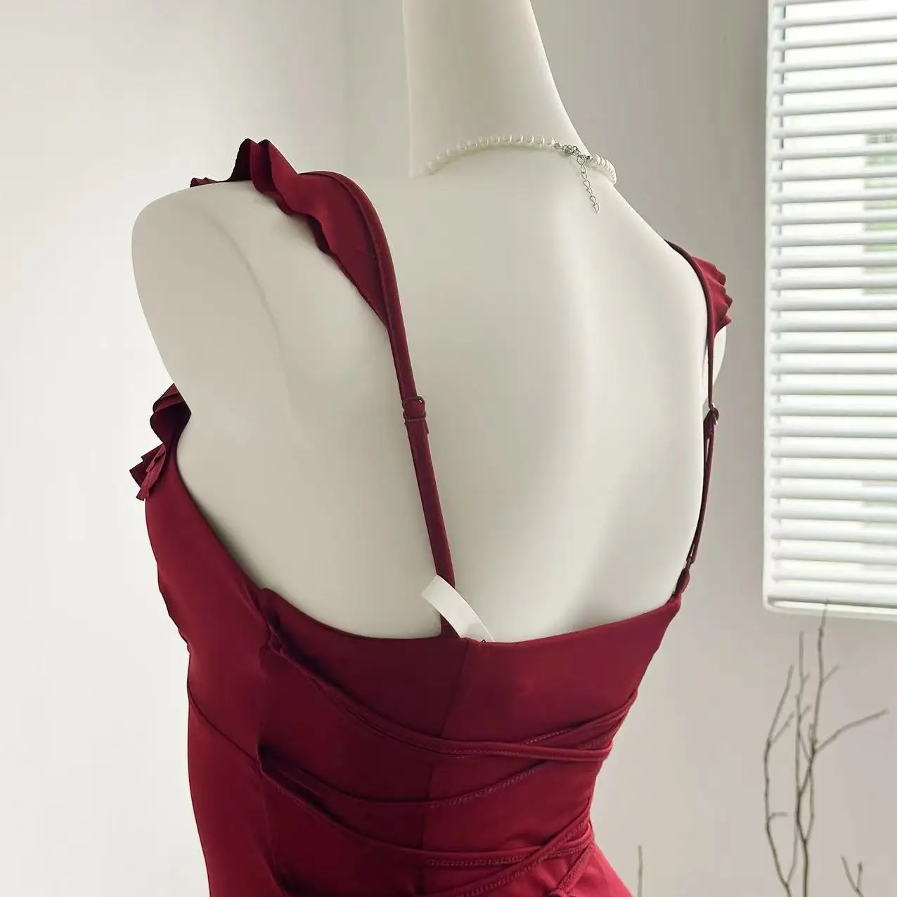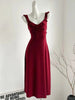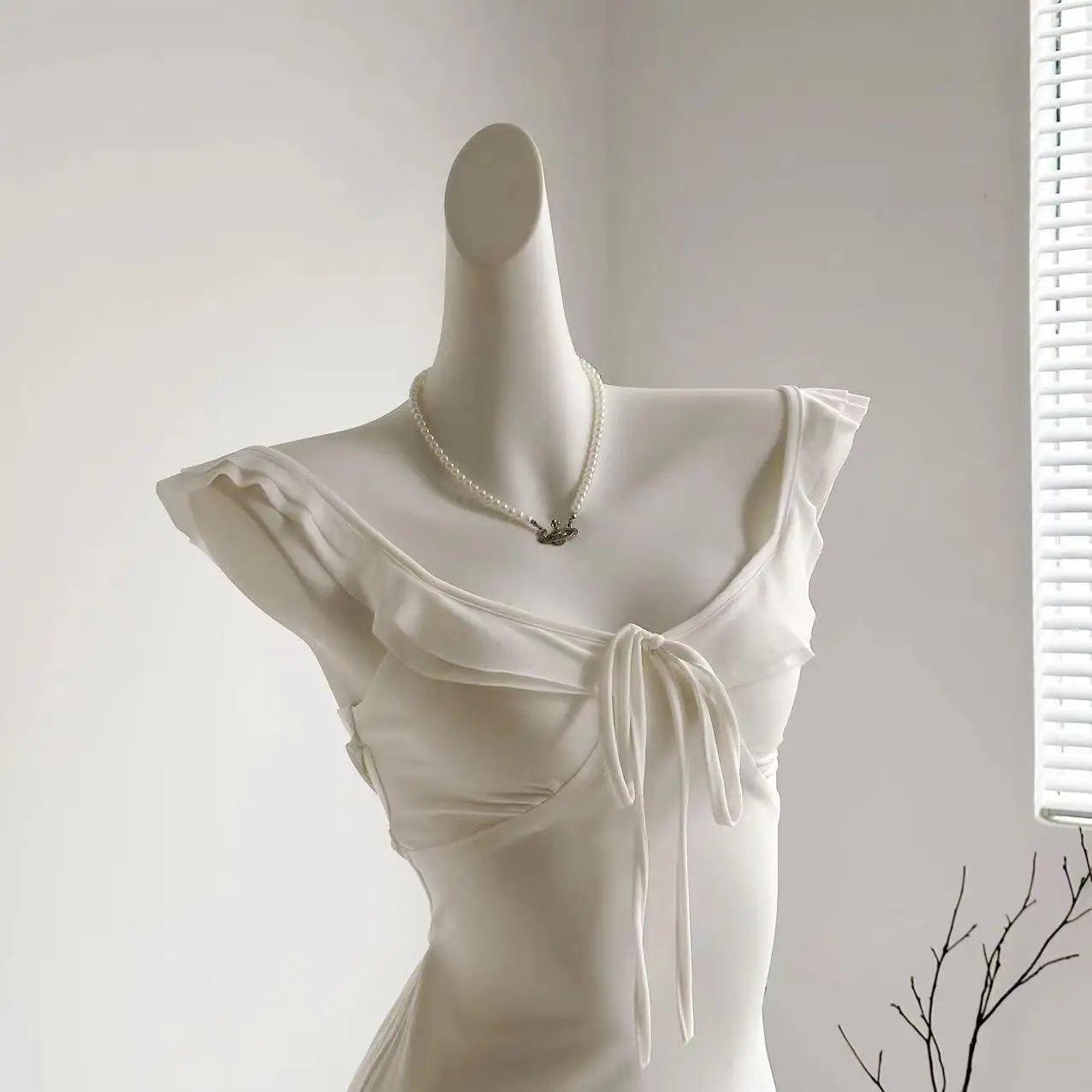 Bxoxo Women's Korean Elegant Ruffles V-neck Lace-up A-Line Dress Sexy Backless Slim Waist Flying Sleeves Dresses Basics Office Lady