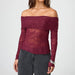 BXOXO Womens Off Shoulder Sheer Tops Floral Lace Chest Folding Boat Neck Long Sleeve Casual T-Shirt for Parties Streetwear