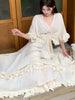 Bxoxo Women's Ruffles Fairy French Dress V-Neck Full Skirt Short Sleeves Long Dressses Beach Holiday Vestidos 2025 Summer Fashion New