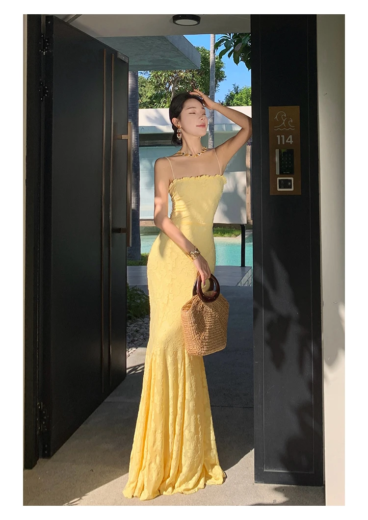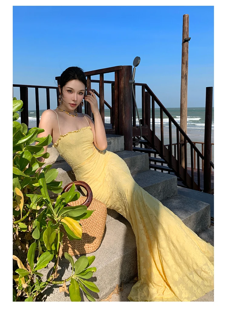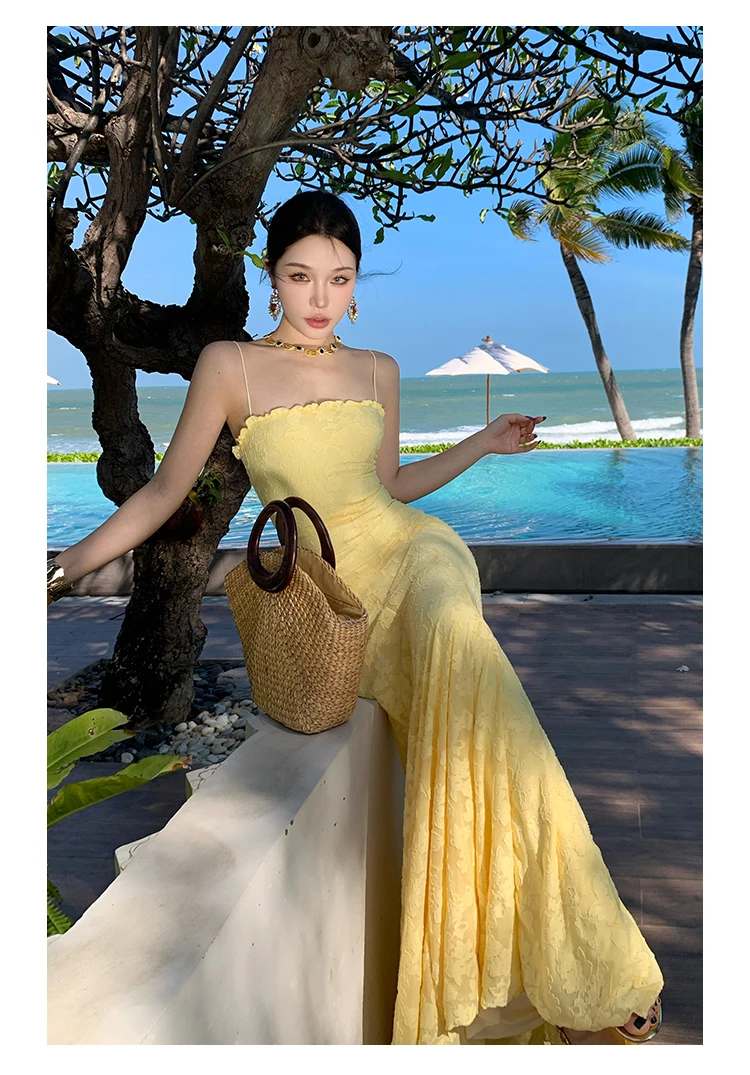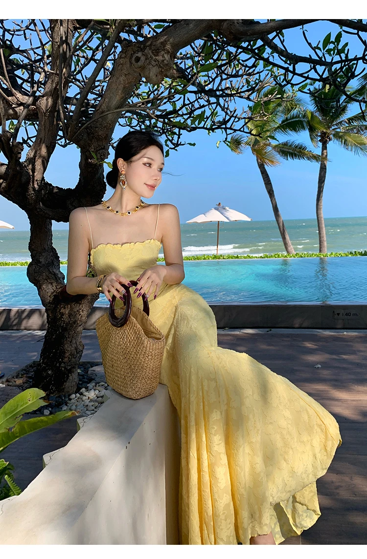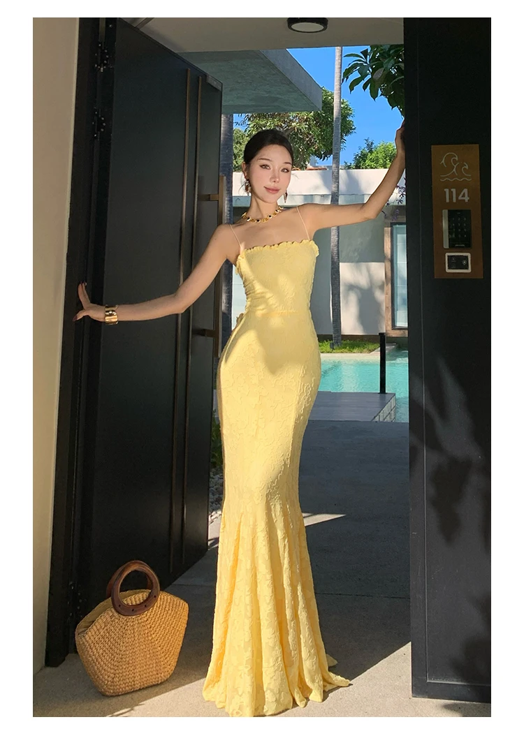 Bxoxo Women's Sexy Bodycon Party Dress Elegant Summer Yellow Lace-up Evening Spaghetti Strap Dresses 2025 New Chic Beach Holiday Robe