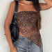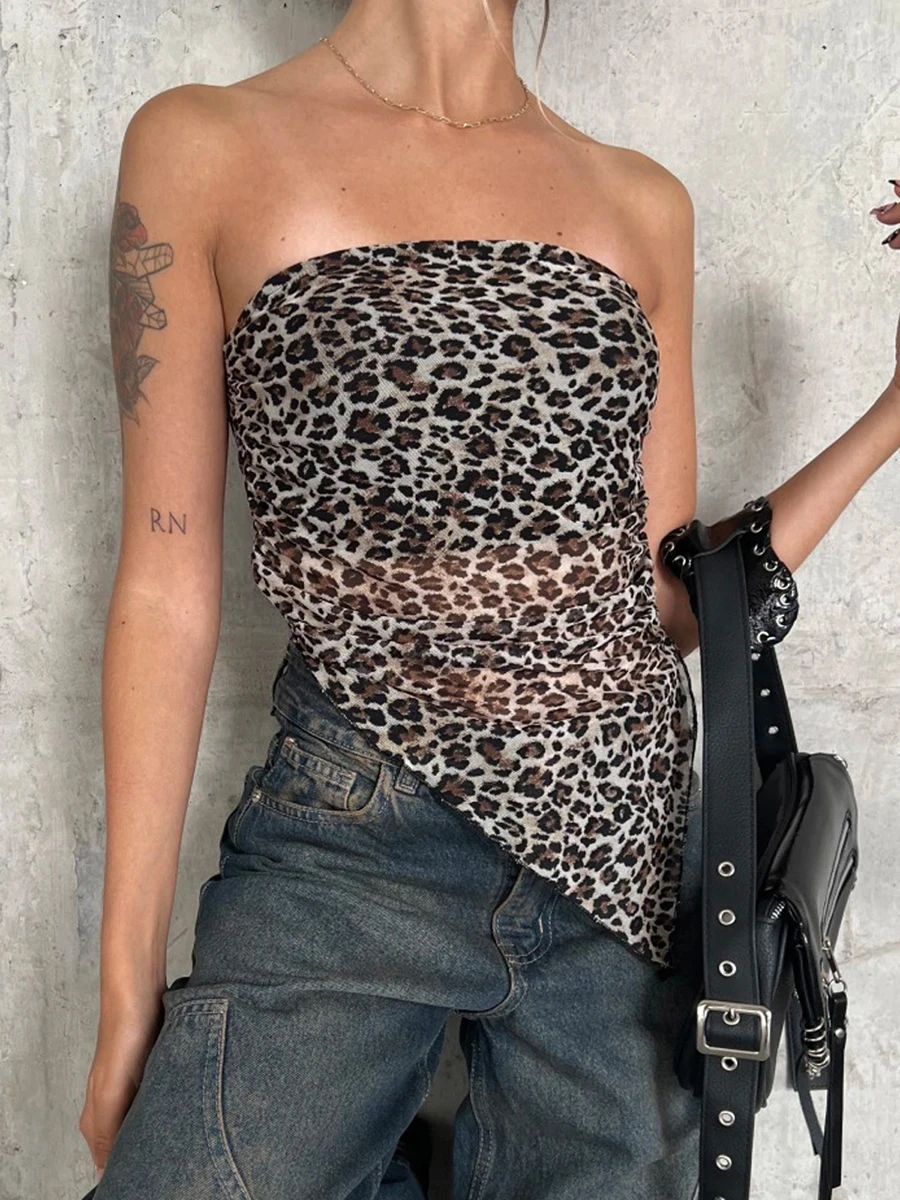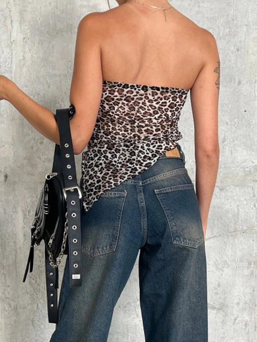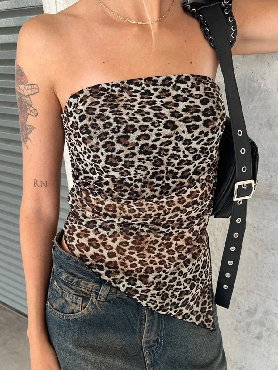 BXOXO Women's Summer Slim Tube Tops Vintage Sleeveless Strapless Off Shoulder Leopard Print Bandeau Cami Vest Y2K Streetwear