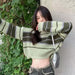 Bxoxo Women's Trendy Contrast Color Striped Chic Sexy Crop Tops Y2K Streetwear Female O Neck Long Sleeve Slim Pullover Knitted Sweater