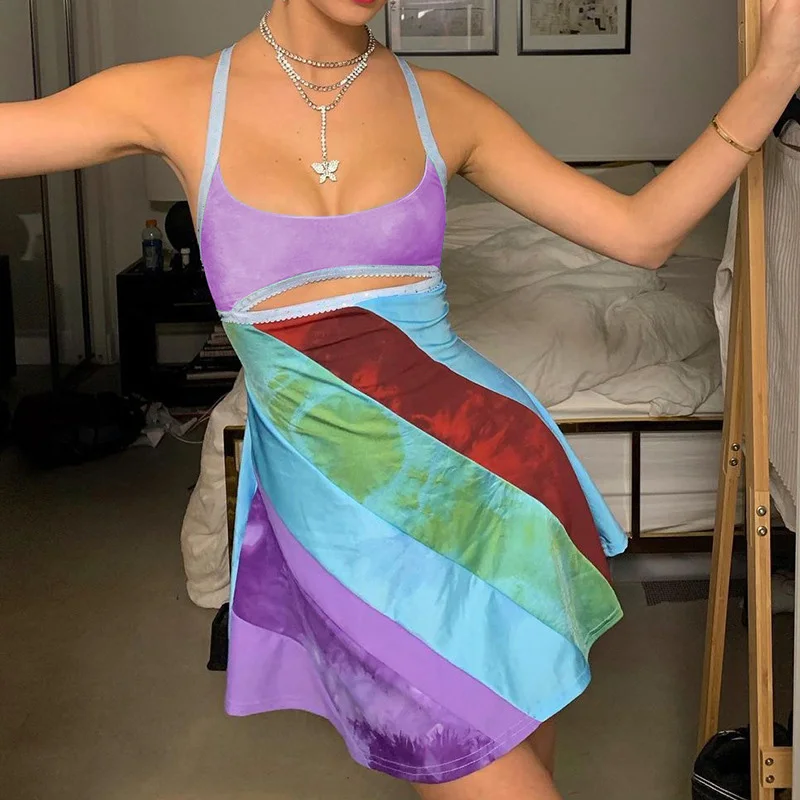 BXOXO Women's Vintage Print Semi-Sheer Sheath Dress 00s Fashion Bodycon Mini Slip Dress Retro Bandana Print Fitted Strap Dress