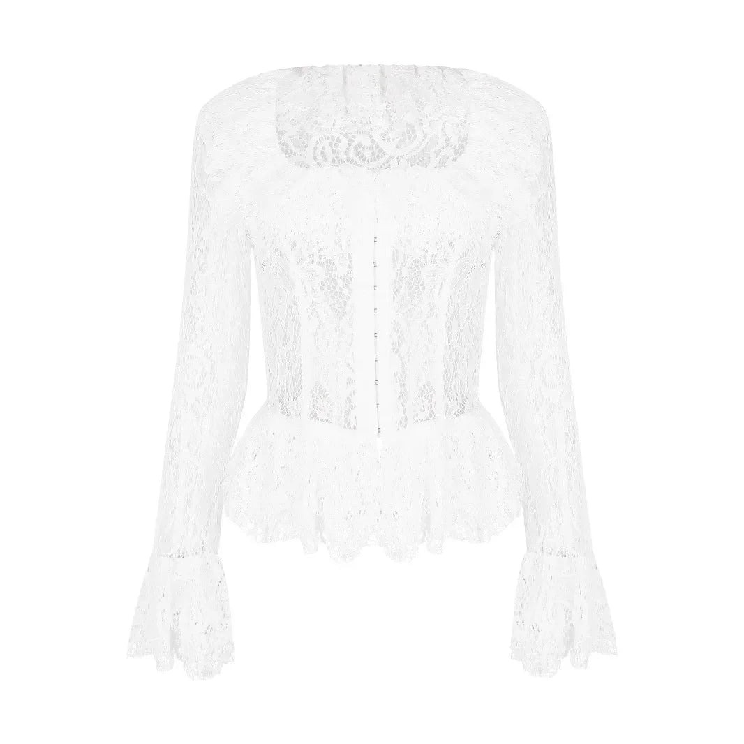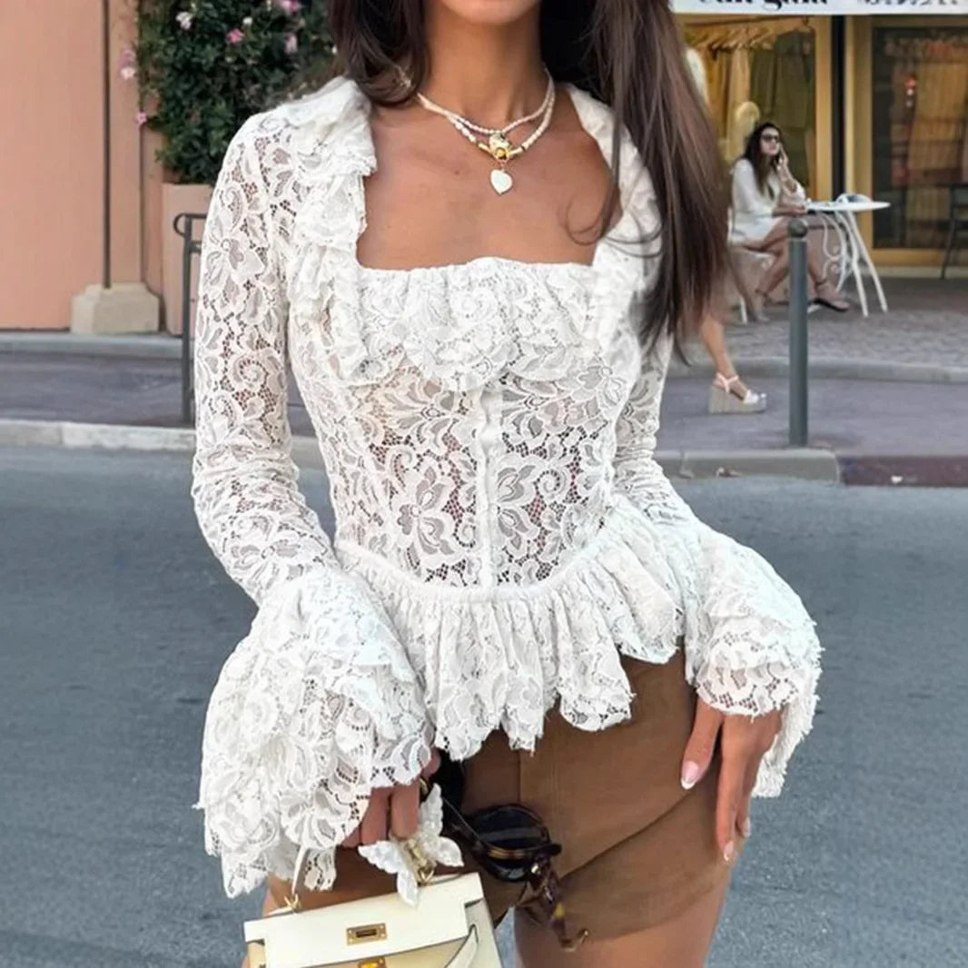 BXOXO Women's White Lace Lace Long Sleeved Square Neck Top with French High-end Feeling As The Base and Inner Layer 2025