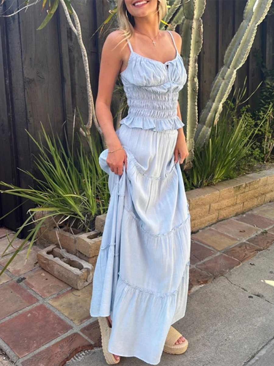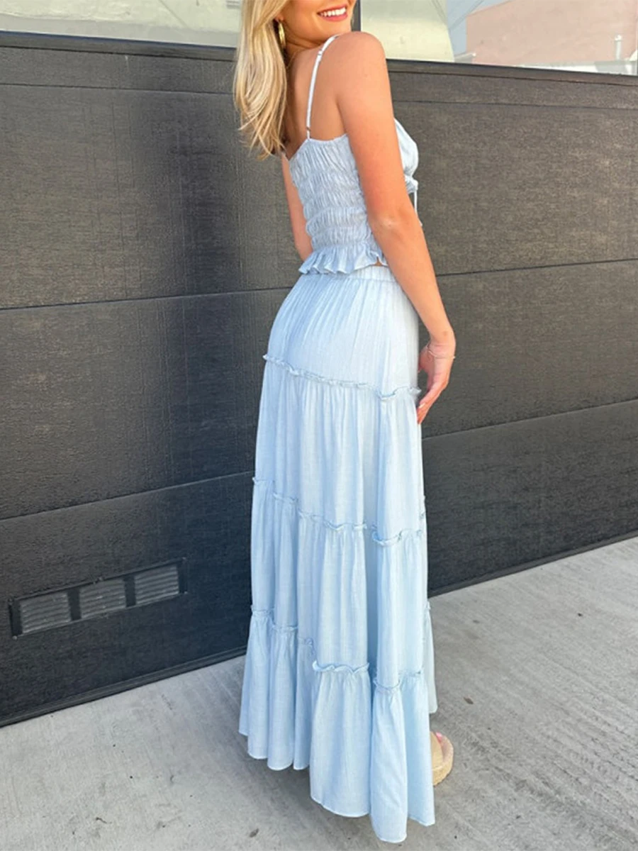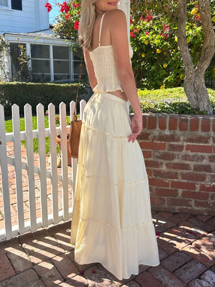 BXOXO Women's Y2K Fairy 2 Piece Skirts Outfits Solid Color Ruched Tie-Up Front Sleeveless Cami Tops Long Skirts Clothes Set