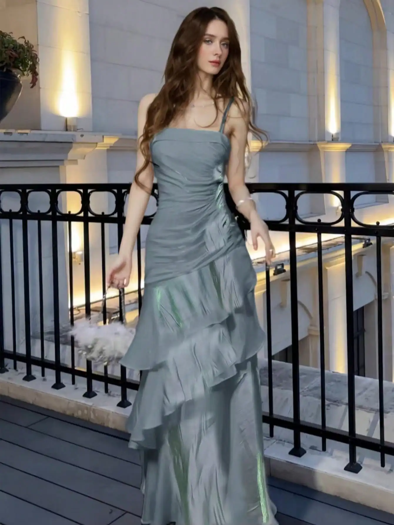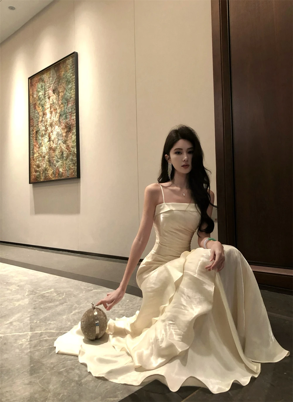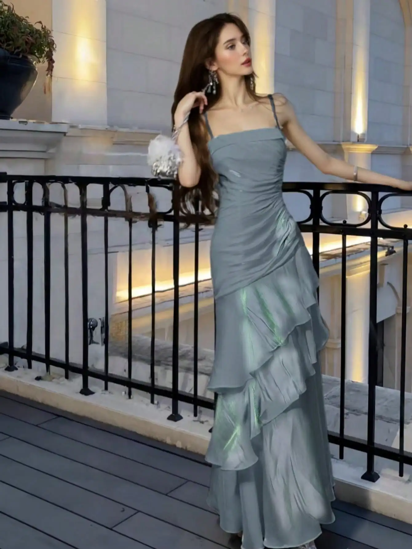 Bxoxo Women'sSexy Ruffles Elegant Mermaid Dresses French Princess Slim Fit Zipper Party Long Dress 2025 New Fashion Prom Evening Robe