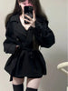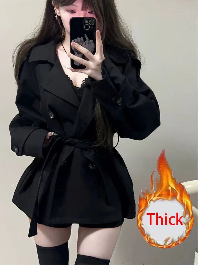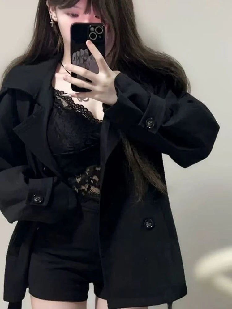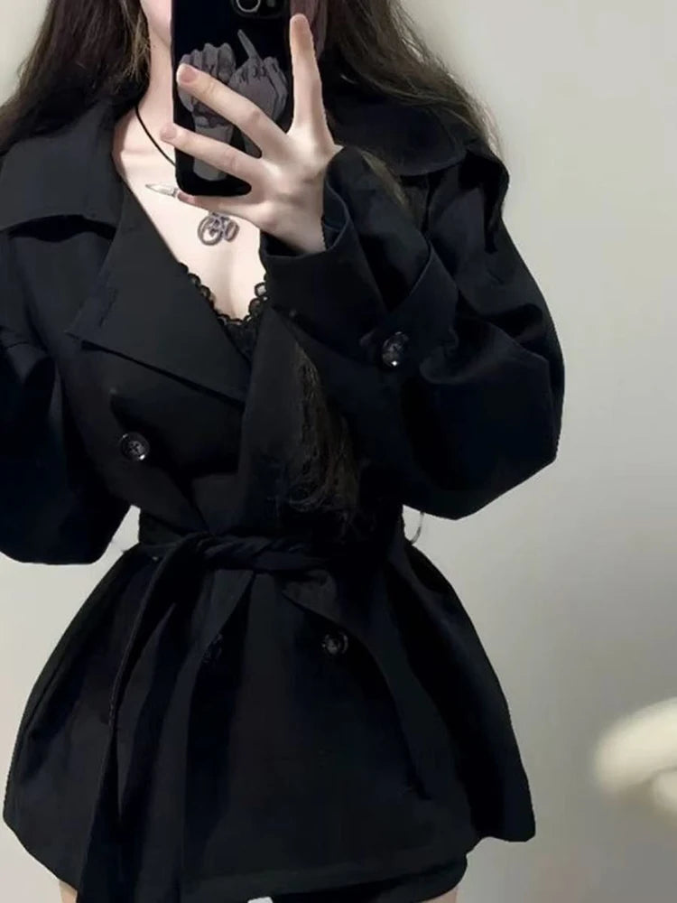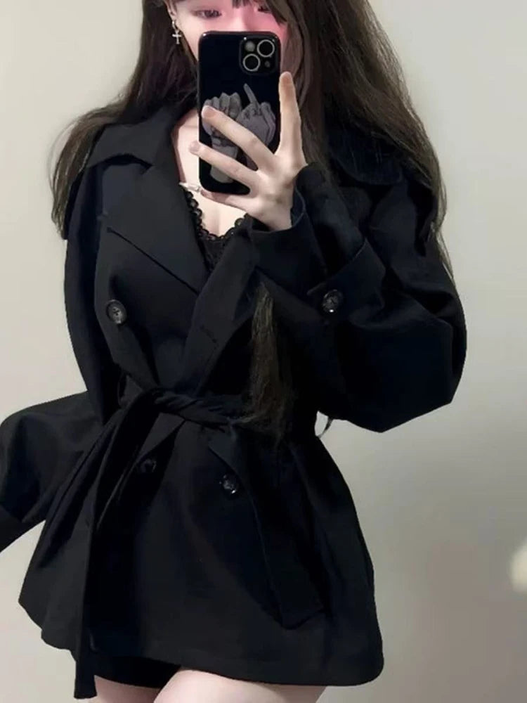 Bxoxo Y2K Black Coats for Women Korean Loose Elegant Double Breasted Lace Up Trench Jacket Ropa Mujer Streetwear Lapel Blend Outerwear