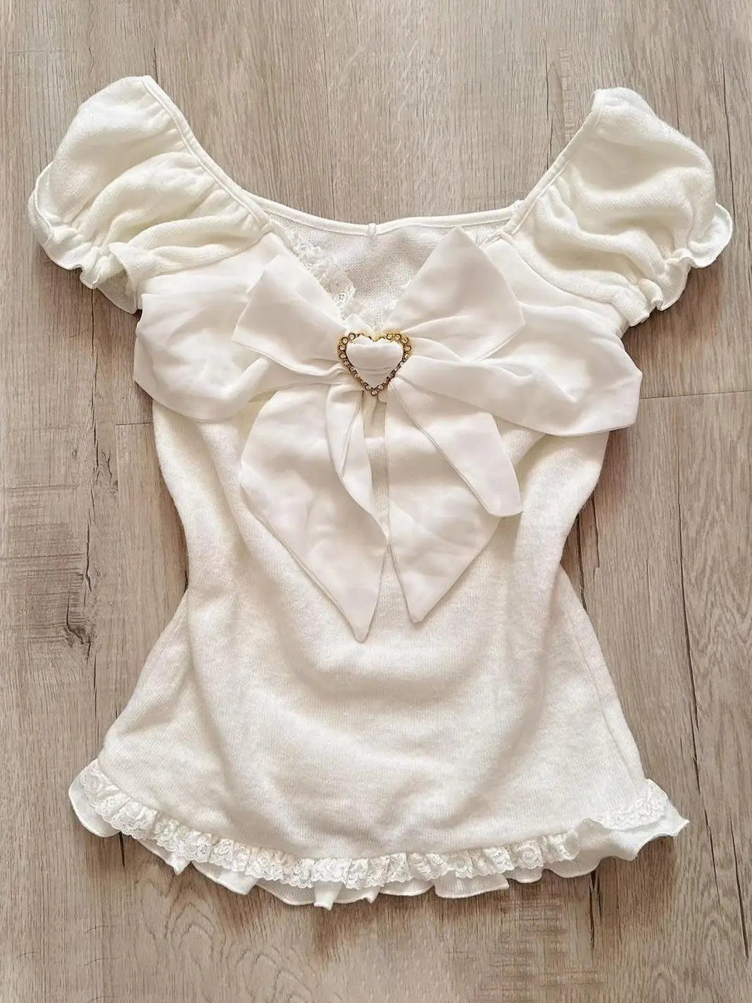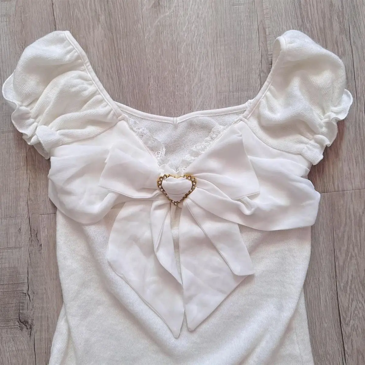 BXOXO Y2k Bow T-shirt Crop Top Goth Slim Clothes Harajuku Korea Short Sleeve Punk Vintage Backless 90s Summer Emo V-Neck Sweet Grunge