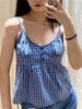BXOXO Y2k Coquette Babydoll Crop Peplum Camisole Women Cute Lace Ruffle Trim Low Cut Floral Gingham Spaghetti Strap Tank Going Out Top