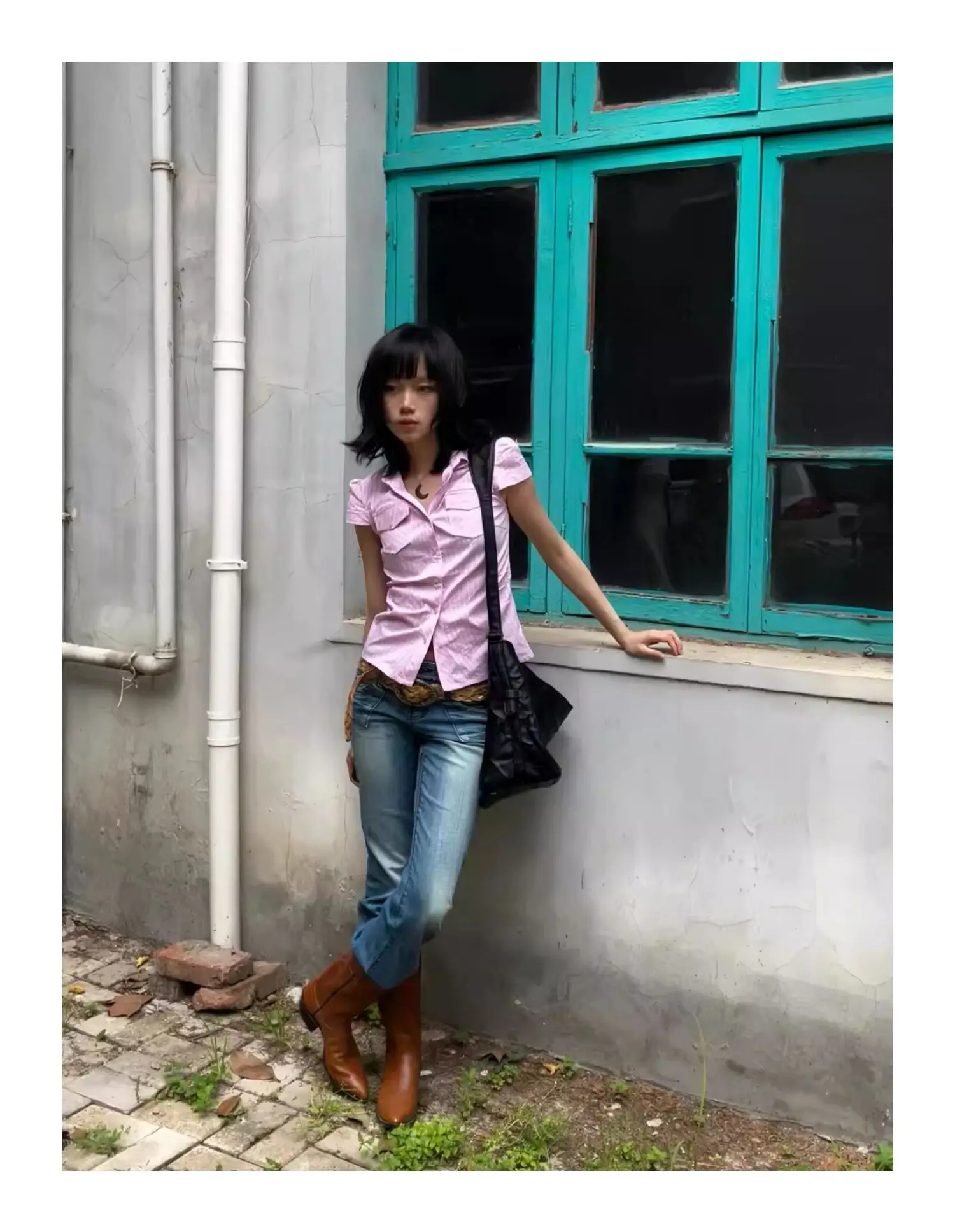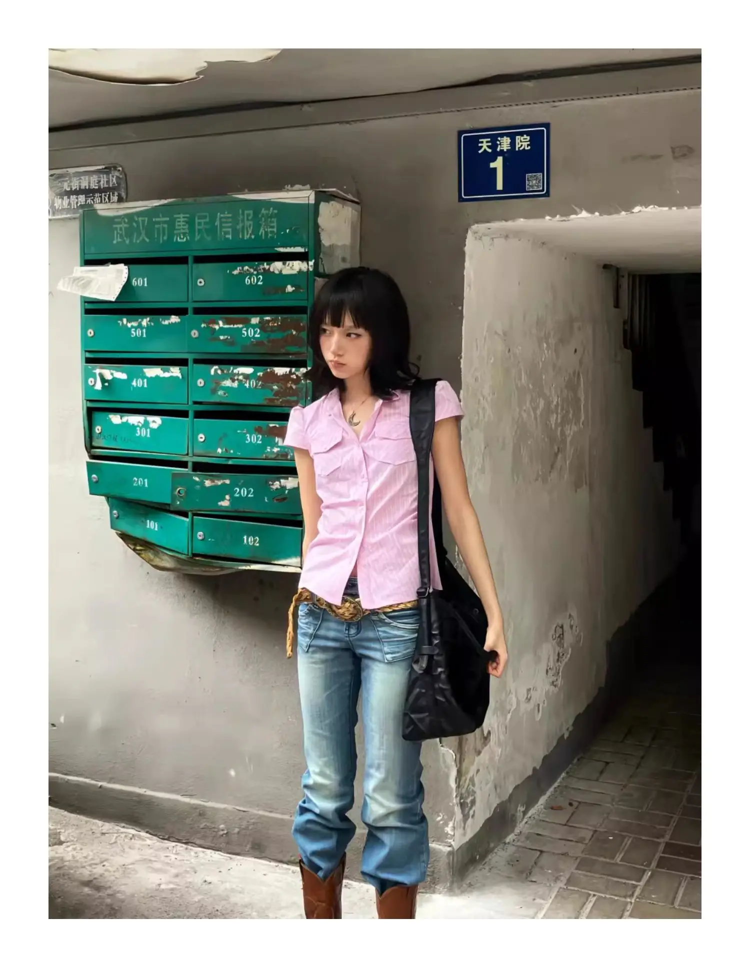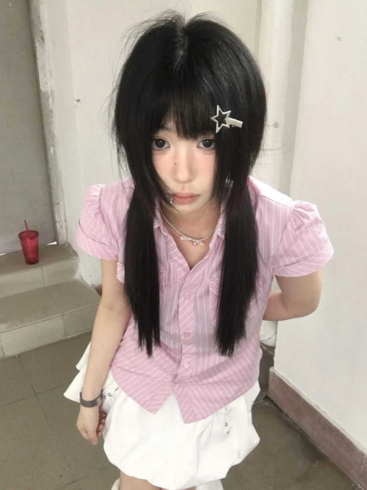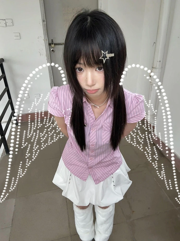 Bxoxo Y2k Fairycore Striped Shirt Women Short Sleeve Pocket Casual Shirt Japanese 2000s Blouse And Shirt American Retro Tops