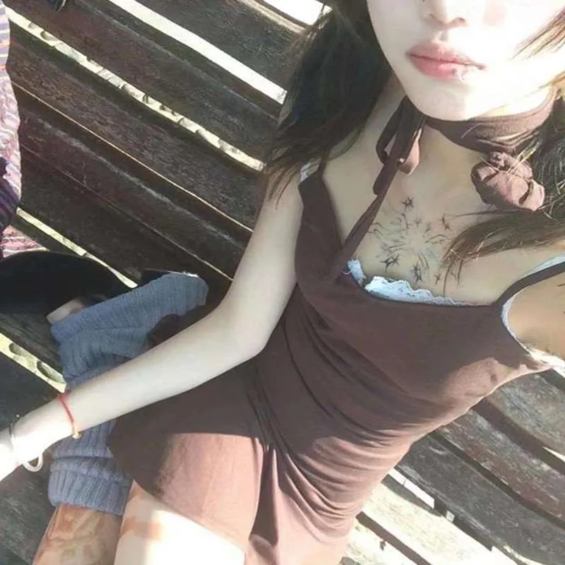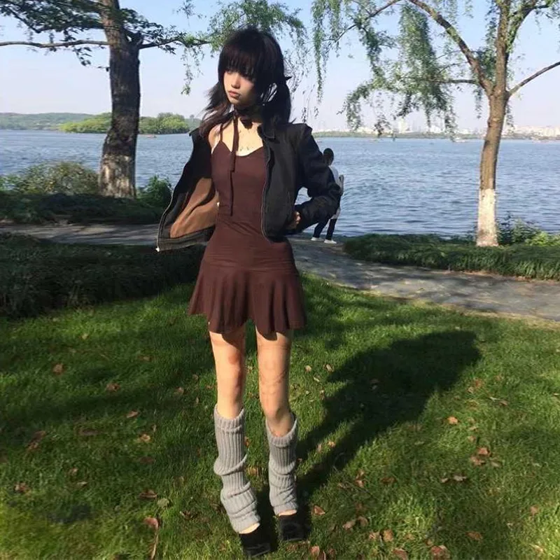 BXOXO Y2k Japanese Dress Women Sleeveless Irregual A-line Dresses Vintage Streetwear Spaghetti Strap Dress High Waist Korean