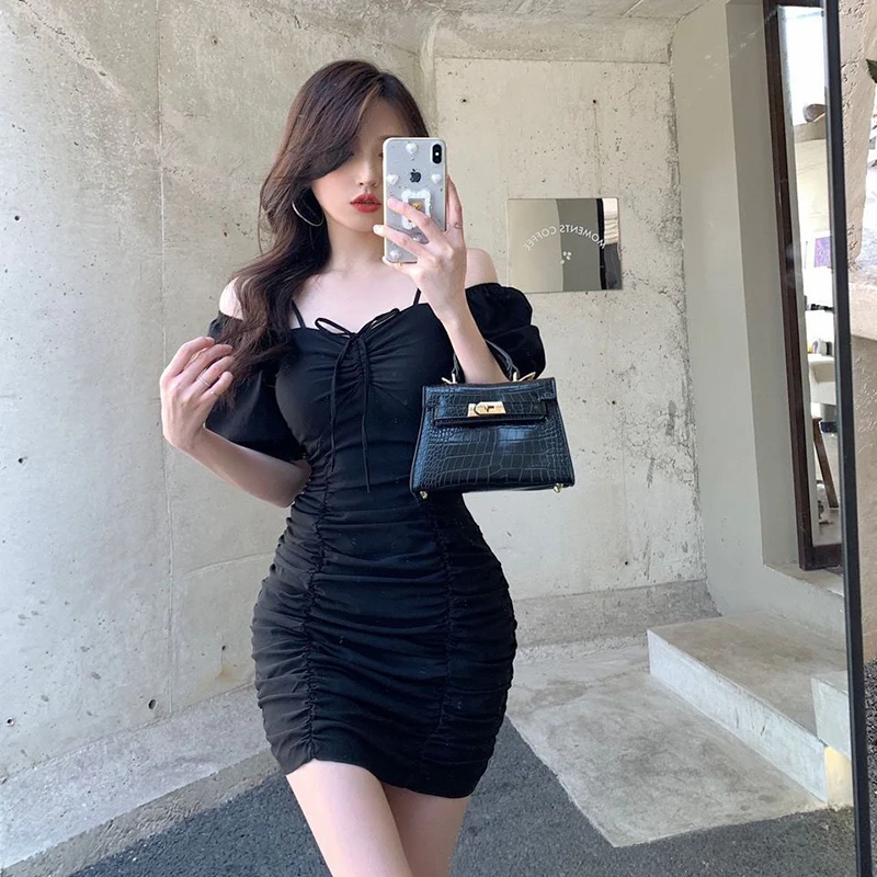 Bxoxo Y2K Ladies Sexy Slim Dress Summer Mini Bodycon Dress Short Style Solid Color Elegant One Piece Korean Style Women's Dress