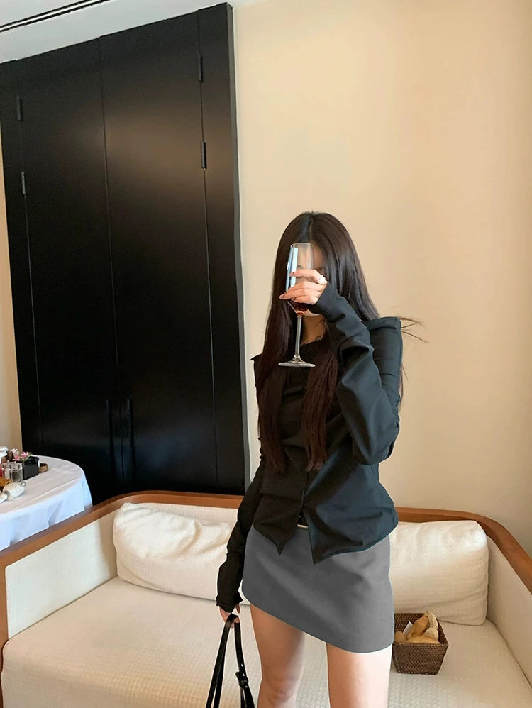 BXOXO Y2K Low Waist Mini Skirt With short lining Sexy A-line Package Hips Mini Short Skater Party Femme Gray Black