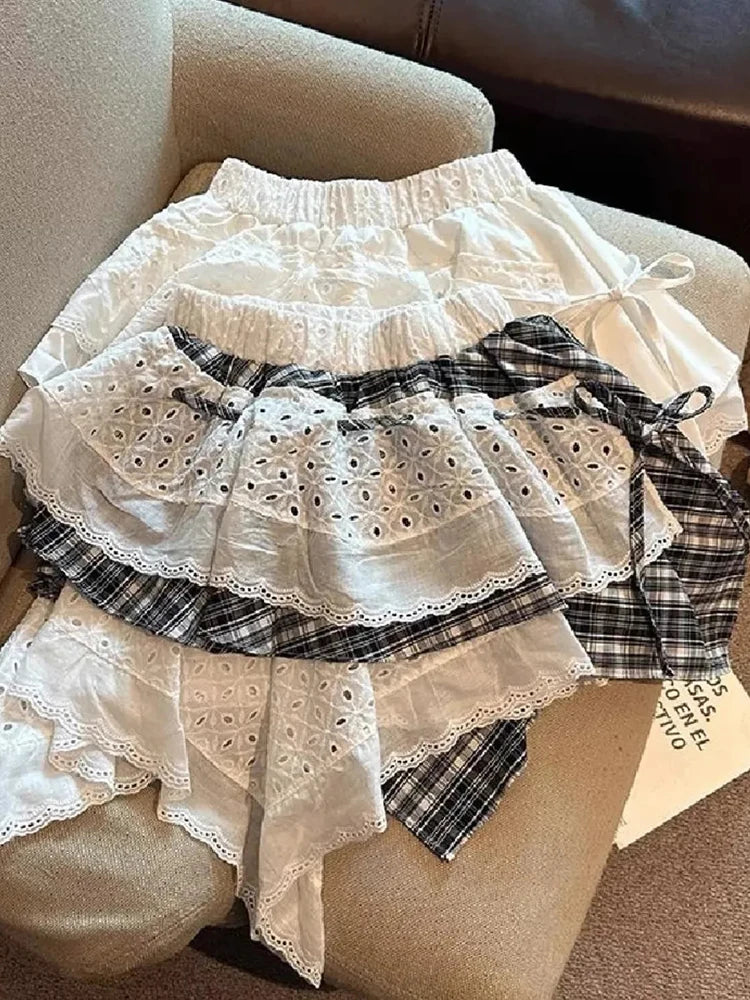 Bxoxo Y2K Plaid Patchwork Skirt Women Vintage Casual High Waist Streetwear Mini Skirts Retro Harajuku American Irregular Skirt
