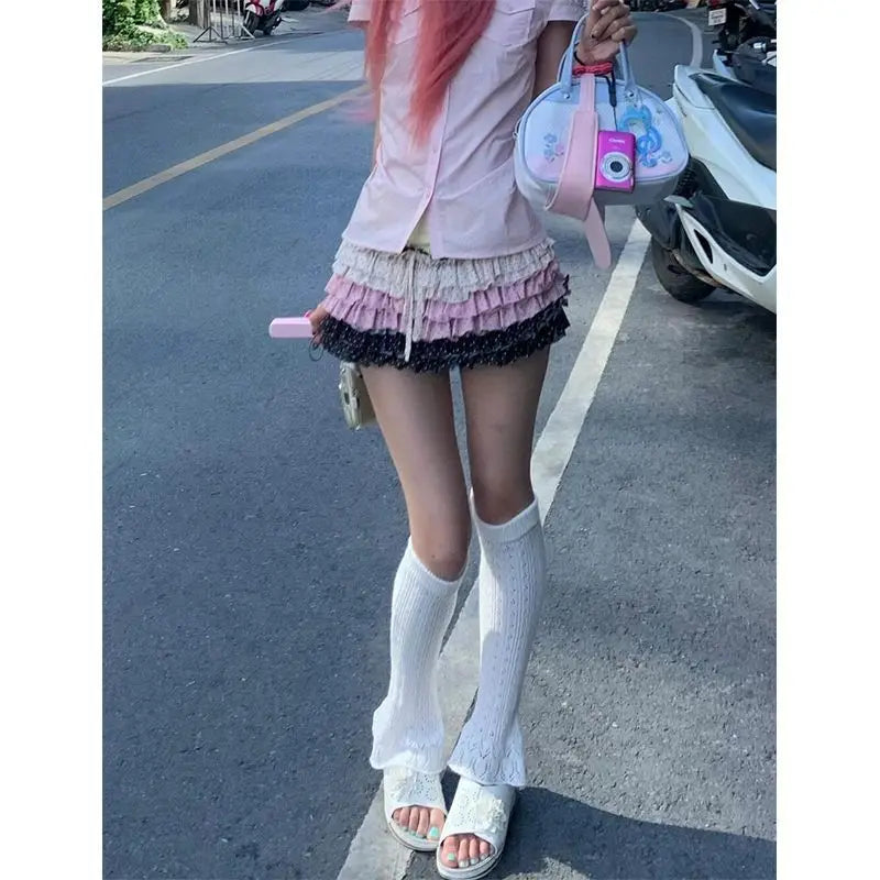 Bxoxo Y2k Vintage Mini Skirt Women Japanese Style 2000s Harajuku Polka Dot Layered Short Skirt Kawaii Fashion Ruffles Skirts