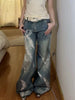 Bxoxo Y2k Vintage Rhinestone Butterfly Women Jeans Washed Harajuku Wide Leg American Style Baggy Denim Pants Gyaru Hip Hop