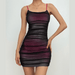 • Contrast Ruched Mesh Square Neck Backless Cami Mini Dress