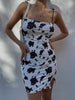 Cow Print Tie Strap Mini Dress