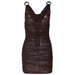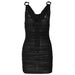 • Cowl Neck Ruched O Ring Sheer Mesh Bowknot Ribbon Backless Cami Mini Dress