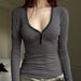 Crop Tops y2k Aesthetic Fairy Grunge Women Knitted Button Long Sleeve Slim 2000s Aesthetic T Shirts Harajuku Tees Clothes