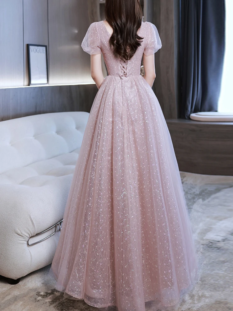 Customized Sweet Temperament Square Collar Puff Sleeve Birthday Party Dresses Front Floral Beading Embroidery Robe Simple Lurex